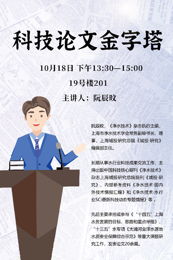 【学术讲座】科技论文金字塔 主讲人:阮辰旼 10月18日下午13:30-15:0019号楼201