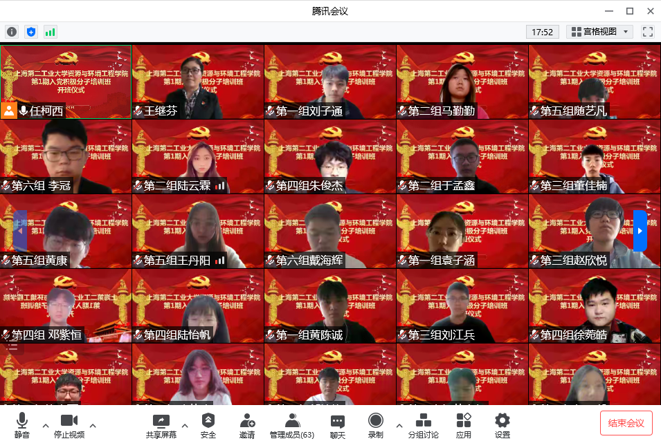 为加强对入党积极分子的教育培养,帮助入党积极分子进一步了解党的相关知识,端正入党动机,明确入党态度,切实保证新发展党员质量,公司党委于2022年5月15日上午通过“腾讯会议”召开了第1期入党积极分子培训班开班仪式暨第一次专题党课授课。公司党委书记王继芬,党委副书记金慧明,学工办主任、本科生党支部书记任柯西以及61名入党积极分子参加了本次开班仪式,仪式由任柯西老师主持。