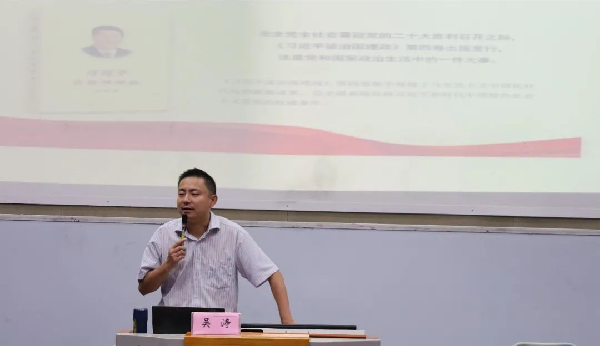 为深入贯彻学习习近平新时代中国特色社会主义思想,深刻理解中国共产党执政的理论创新、实践创新、制度创新,9月7日下午,高等职业技术(国际)公司和永利yl23411开展联组学习,邀请中国浦东干部公司基层党建研究中心主任、复旦大学博士后吴涛教授作题为“开辟新境界、实现新飞跃——学思践悟《习近平谈治国理政》第四卷”的专题讲座。高职公司、永利yl23411全体党员教师参加此次学习,讲座由高职公司党总支书记王秀红主持。