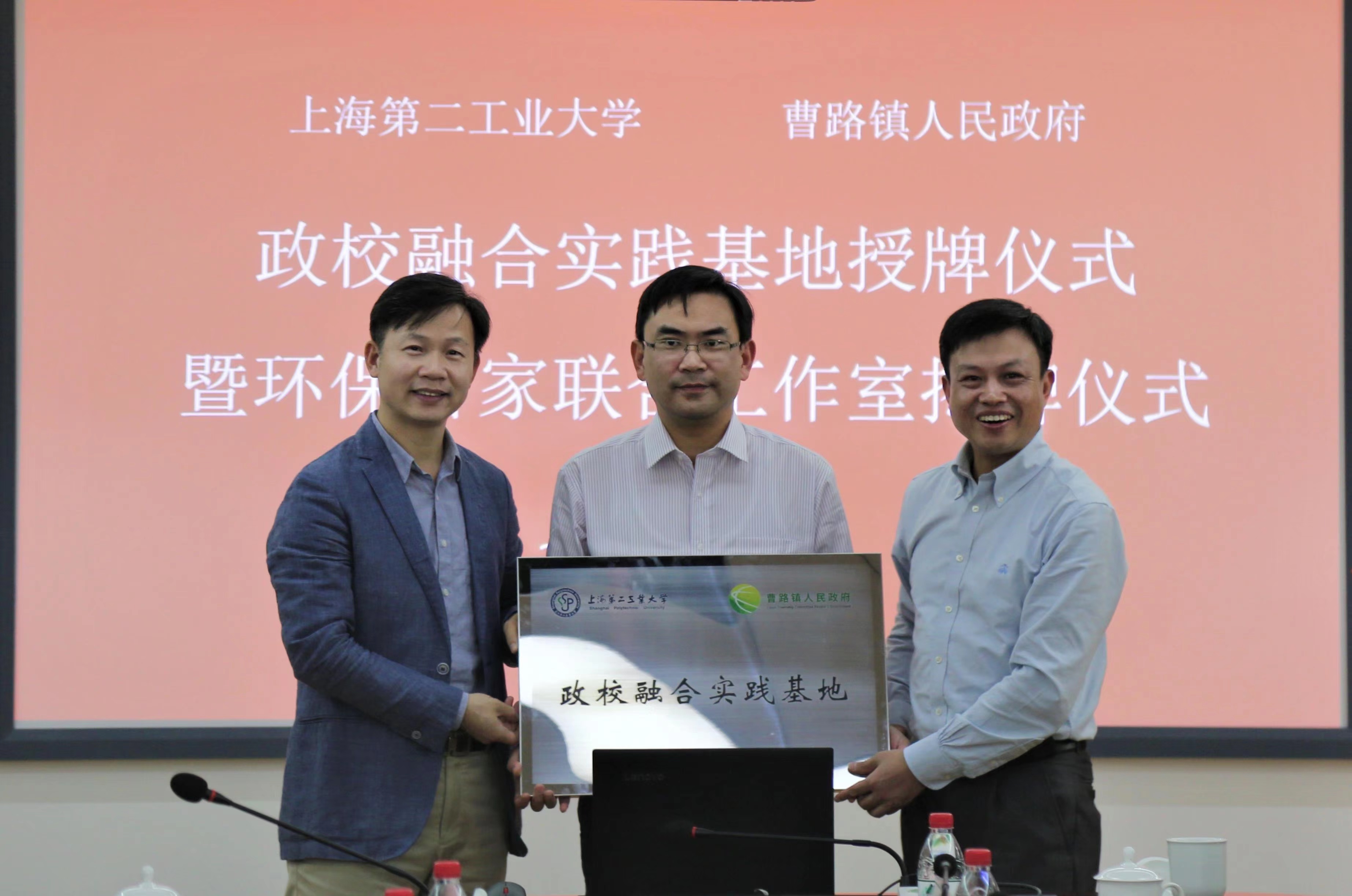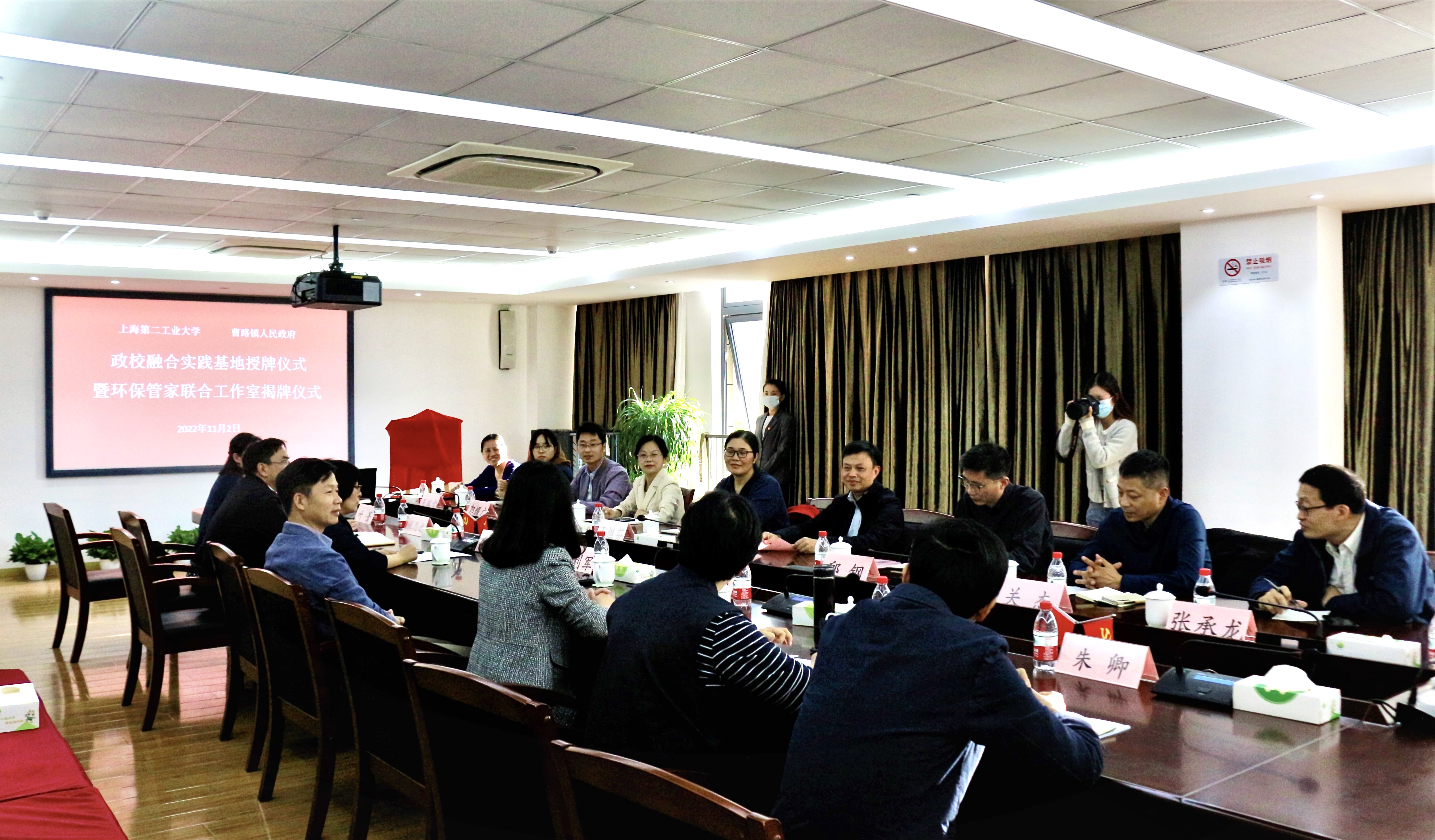 11月2日,谢华清董事长带队走访曹路镇政府,和金利军镇长、张同乐副书记等曹路镇领导共商校地合作,双方举行了政校融合实践基地授牌暨环保管家联合工作室揭牌仪式。公司党政负责人和相关专业负责人,校办负责人等陪同走访。