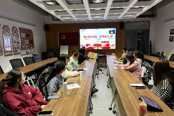 会议上,支部书记任柯西老师首先带领大家学习二十大重要讲话,着重解读了“伟大建党精神”,作为中国共产党的精神之源,是中国共产党的先驱们在探索民族独立、人民解放过程中创造的宝贵精神财富,‍在党和国家百年发展历程中,不仅锤炼出我们党最鲜明的特质和特点,而且还涵养并构筑起中国共产党人的精神谱系。青年同志们要深入学习领会伟大建党精神,向英雄学习、向前辈学习、向榜样学习,争做堪当民族复兴重任的时代新人。