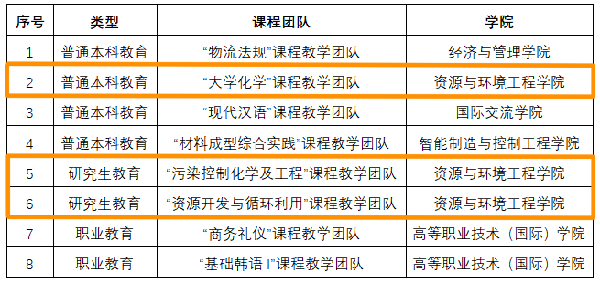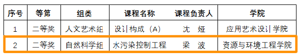 梁波老师负责的课程“水污染控制工程”获首届上海市课程思政教学设计展示活动自然科学组二等奖;王继芬老师负责的本科课程“大学化学”、赵静老师负责的研究生课程“污染控制化学及工程”、马恩老师负责的研究生课程“资源开发与循环利用”入选上海市课程思政示范课程;本科“大学化学”课程教学团队、研究生“污染控制化学及工程”、“资源开发与循环利用”教学团队入选上海市课程思政示范团队。