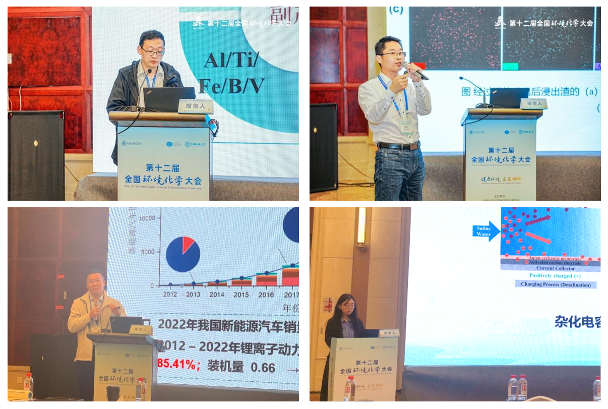 副经理张承龙教授、环境工程系主任郭耀广教授、环境工程系张西华副教授、陈泽秋博士分别作了《低温电沉积工艺资源化硅产业副产物SiCl₄的研究》、《废弃三元电池资源化新途径:同步提锂及制备催化剂处理典型VOCs》、《退役动力电池关键资源流动及其循环利用研究进展》和《基于MXene法拉第型复合电极的电化学水环境处理技术研究》的口头报告。