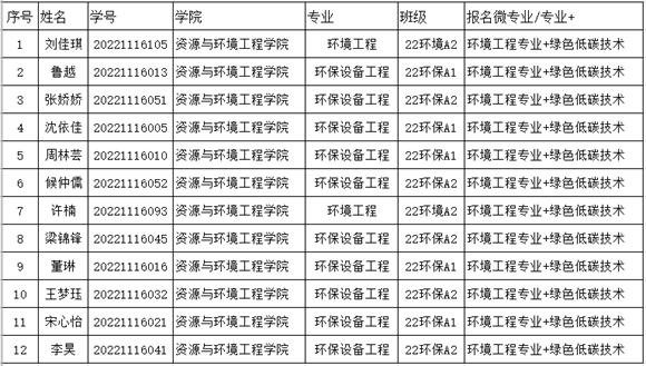 永利yl234112024级环境工程专业+绿色低碳技术拟录取名单公示