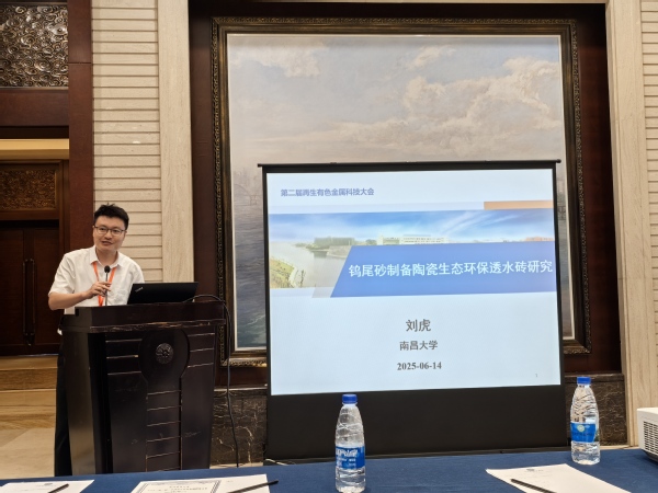 南昌大学物理与材料公司刘虎副教授分享了“钨尾砂制备陶瓷生态环保透水砖研究”,为工业尾砂的资源化利用提供了新思路。