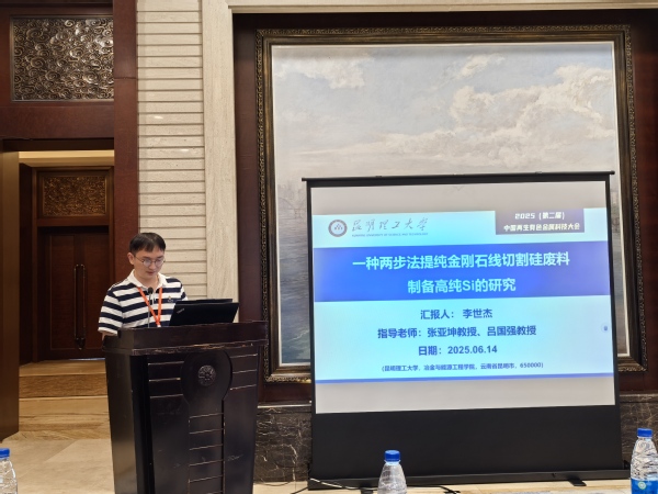 昆明理工大学冶金与能源工程公司李世杰同学,以“一种两步法提纯金刚石线切割硅废料制备高纯Si的研究”为报告主体,展现了青年学者的创新活力,其研究方向代表了行业未来的发展希望。