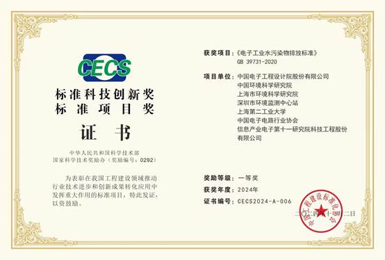 This standard was collaboratively authorizedby China Electronics Engineering Design Institute Co., Ltd., ShanghaiPolytechnic University, Chinese Research Academy of Environmental Sciences, ShanghaiAcademy of Environmental Science, Shenzhen Environmental Protection MonitoringCenter Station and other organizations. The standard specifies the emissioncontrol requirements, monitoring requirements, and supervision and managementrequirements for water pollutants in the electronic industry. Its significanceis profound in regulating the emission behavior of water pollutants in theelectronic industry, protecting the water environment, and promoting the greendevelopment of the electronic industry.